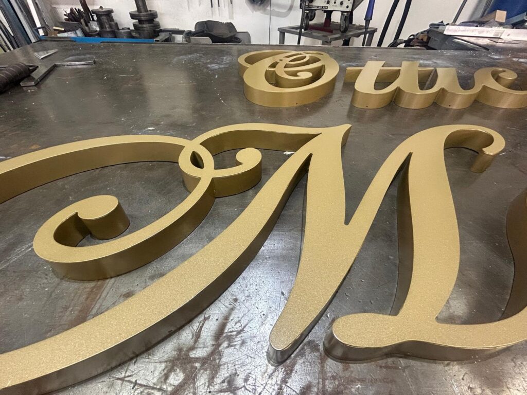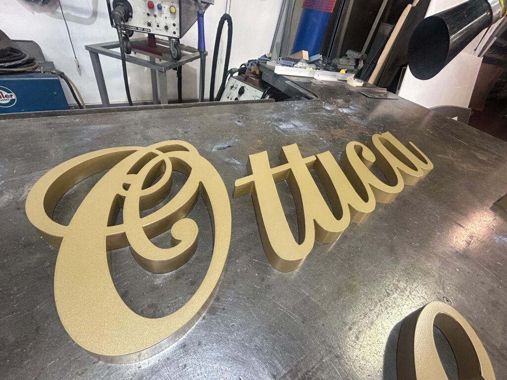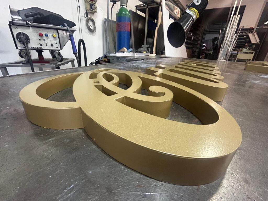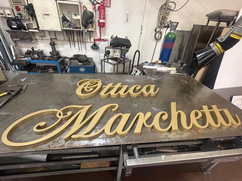 Scritta scatolata in ottone verniciata oro satinato