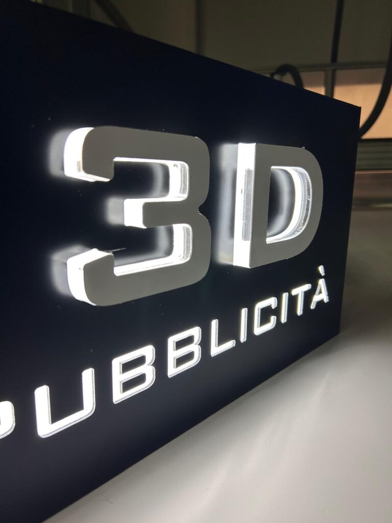 Insegna monofacciale con pannello in dibond scatolato traforato con luce diretta e indiretta