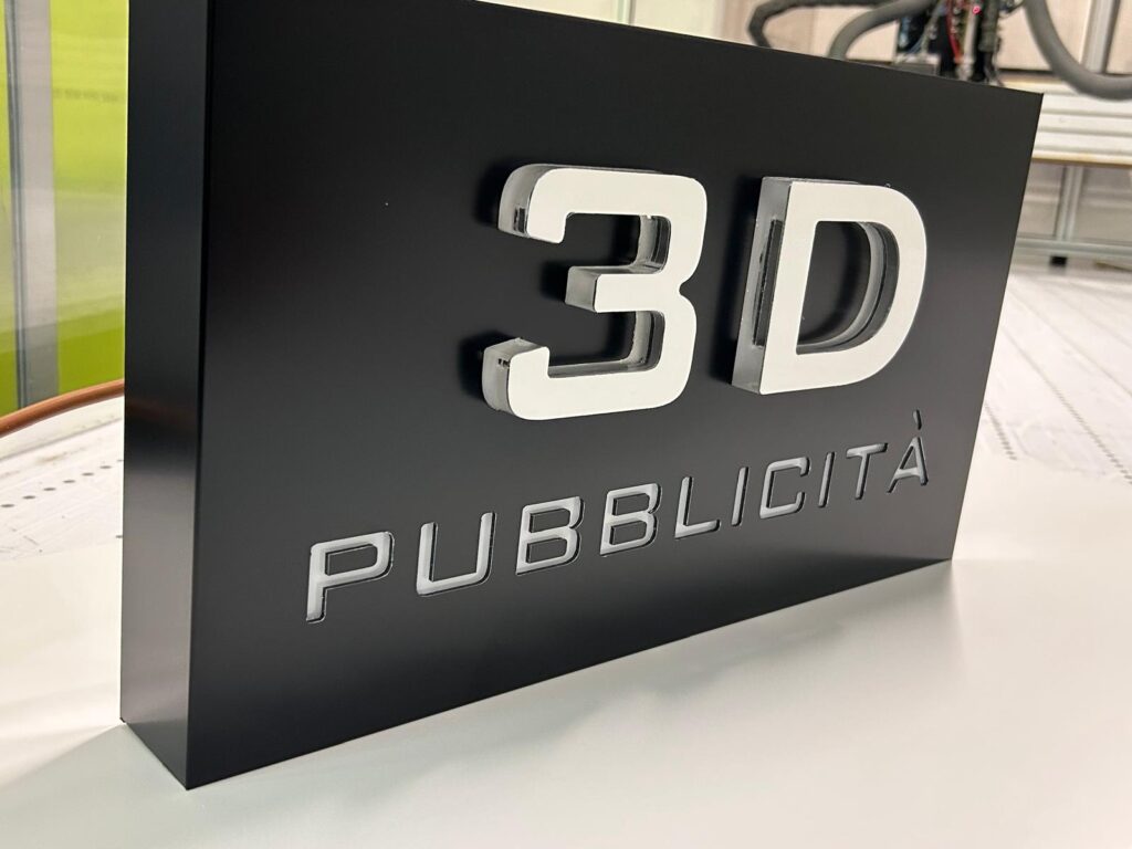 Cassonetto nero con lettere trasparenti spessore 20mm e scritta traforata piana